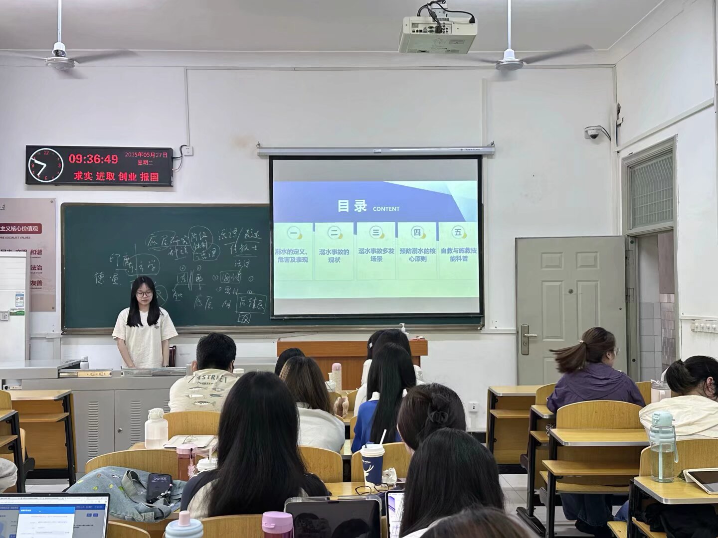 随着气温逐渐升高,溺水事故进入高发期。防溺水专题教育成为此次班会的重点内容。各班副班长化身“安全讲解员”,详细介绍淡水淹溺、海水淹溺两种类型,深入剖析溺水事故的致死原因。他们结合近年来身边发生的真实溺水案例,用一个个惨痛的教训着重强调防溺水的重要性和必要性。在讲解过程中,副班长们还关注游泳或生活中与水有关运动的细节,比如提醒同学们游泳前做好热身、不擅自与他人结伴游泳等,以此加强学子对防溺水安全的重视。通过情景化的生动讲解,让学生深刻认识到溺水事故对个人生命、家庭幸福和社会和谐造成的多重伤害,切实增强 “珍爱生命,远离危险” 的安全自觉。