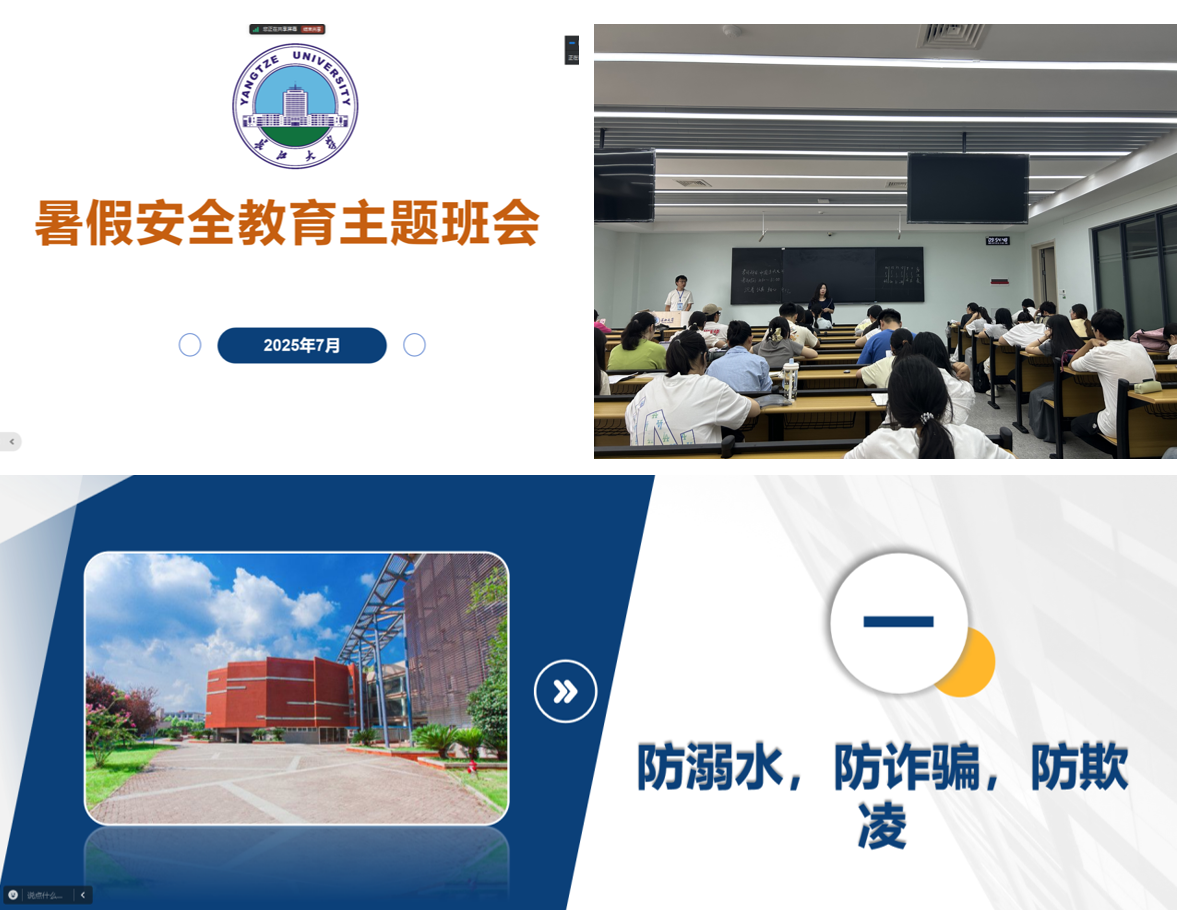 为增强学生假期安全意识,保障学生度过平安快乐的暑假,近日,学院各班级组织开展了假期安全教育主题班会,为同学们送上全面的安全“防护指南”。