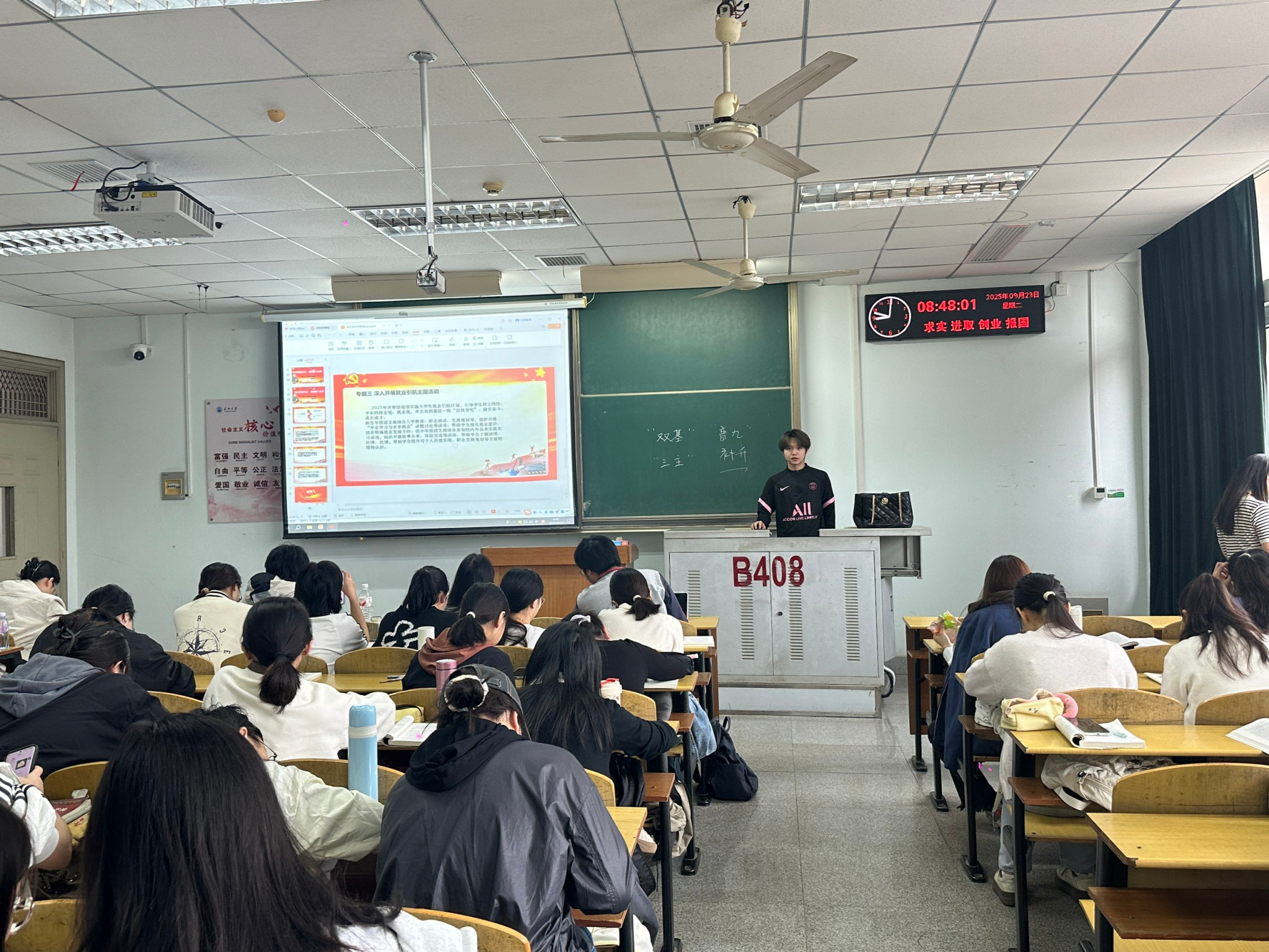 本次主题教育实践活动围绕四大核心内容系统开展。在重要讲话学习环节,各支部聚焦习近平总书记《扩大内需是战略之举》《因地制宜发展新质生产力》等重要文章,以及关于党的自我革命、网络生态治理、全面依法治国的重要指示批示精神,通过集中研读、互动研讨等形式,引导同学们深刻领会战略内涵,将个人发展与国家高质量发展紧密结合。