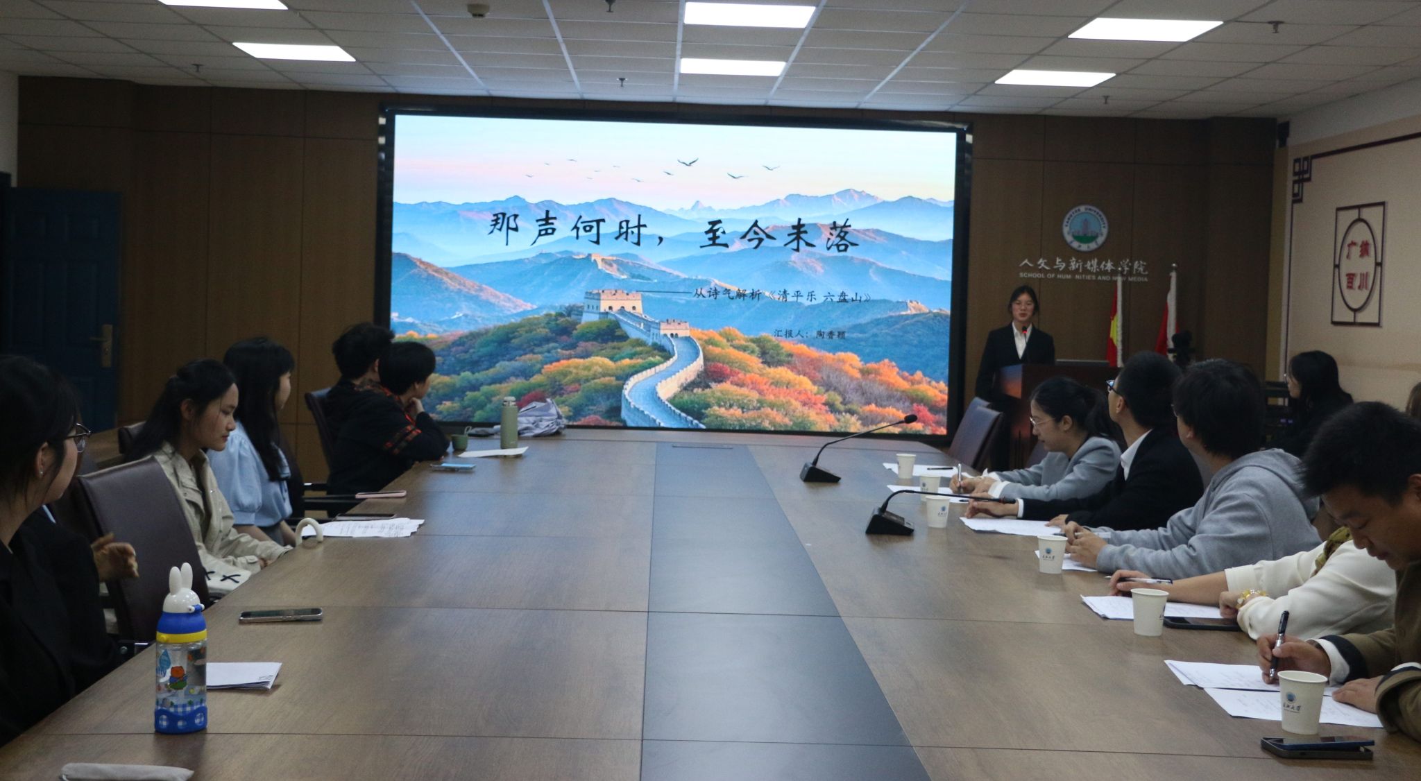 赏析内容兼具深度与温度:既有蒋捷听雨的岁月感怀,亦有岑参咏雪的真挚情谊;汪名荣同学以士大夫精神为切入点,深刻阐释《渔家傲・秋思》中的报国热忱与戍边坚守;余秋雨同学借《登岳阳楼》雄浑气象,探寻杜甫晚年不移的家国情怀;陶香颖同学立足专业视角,以新闻思维品读红色诗词,赋予经典全新时代解读。