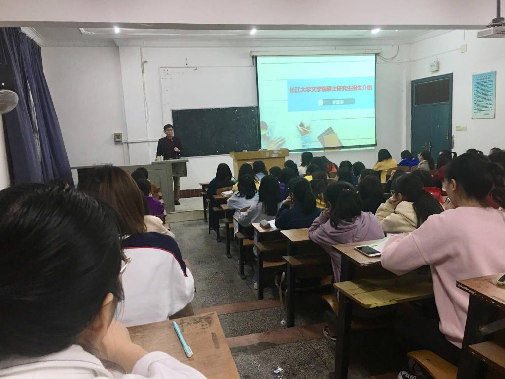 4月16日晚,应6776永利集团文理学院人文与传媒系邀请,我院中文系主任李征宇前往该院进行2020年硕士研究生招生宣传讲座,该院人文与传媒系副主任徐霄和近百名学生参加。