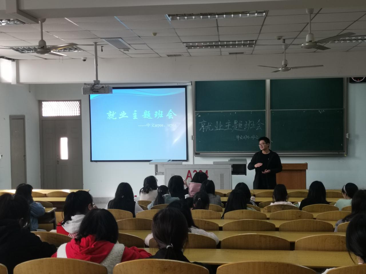 (学生记者 赵达)10月19日上午10时许,yl6776永利集团在13教A区304举行就业协议书发放暨就业信息说明会。龙厚雄老师、辅导员何宁,2017级全体在校同学参会。