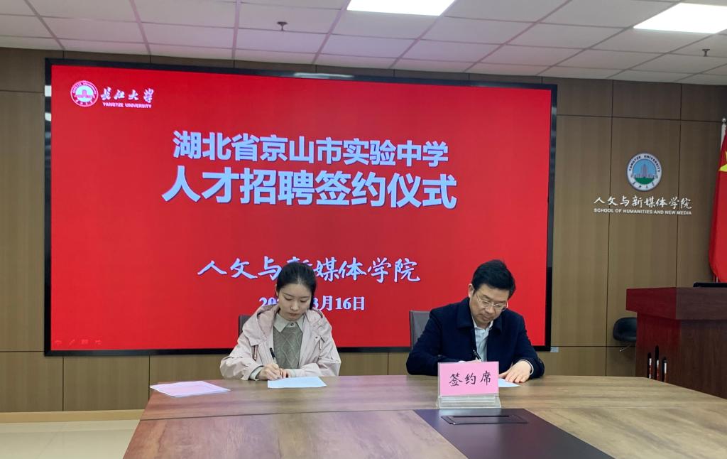 3月16日下午,我院与湖北省京山市实验中学人才招聘签约仪式于东校区文科楼705会议室举行。湖北省京山市实验中学校长崔本彬一行三人,学院党委副书记胡世先、就业专干田华蓉、毕业班班主任代表及两名签约学生参加签约仪式。