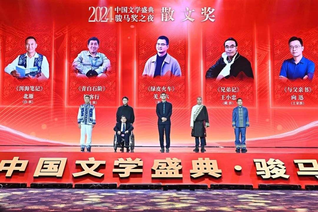(通讯员 彭超 胡雪芬)近日,“2024中国文学盛典·骏马奖之夜”在广西南宁举行。中央统战部副部长,国家民族事务委员会主任、党组书记潘岳,中国作协党组书记、副主席、书记处书记张宏森以及国家民委、中国作协、广西壮族自治区有关领导,中国作协全委会委员、专项会议代表等出席活动。会上,隆重举行了第十三届全国少数民族文学创作骏马奖的颁奖仪式。据悉,此次共评选产生25部获奖作品和5名获奖译者,我院2007届汉语言文学专业校友向迅凭借满溢深沉情感的《与父亲书》,一举斩获散文奖。