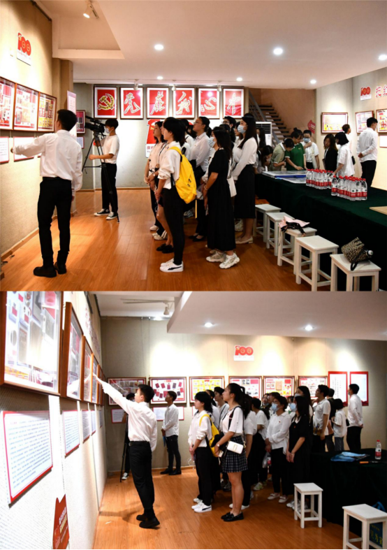为迎接建党100周年,加强学生党员党史学习,6月15日上午,yl6776永利集团新闻和历史专业联合本科生党支部开展6月份支部主题党日活动暨预备党员转正会议,参观“奋斗百年路 启航新征程”6776永利集团红色徽章书画展。新闻和历史专业联合本科生党支部书记何宁、全体党支部党员参与此次活动。