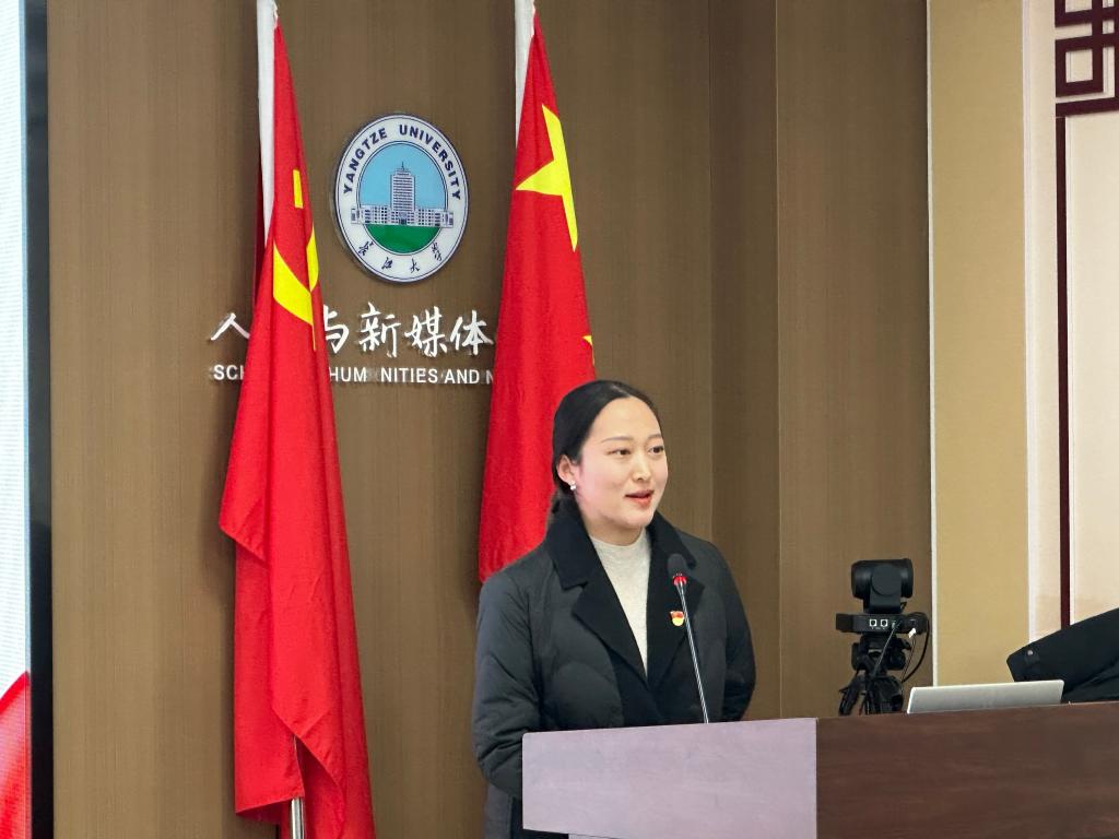 陈儒同志讲授题为《“七个着力”视角下高校宣传工作》的党课(微党课),陈儒同志从“七个着力”引领高校宣传思想工作的重要意义、“七个着力”引领高校宣传思想工作创新路径以及“七个着力”引领高校二级学院的宣传工作策略等三大板块入手讲述高校党委宣传部的宣传思想工作以及高校二级学院的宣传思想工作。另外,通过自己的教学经验分享《融合新闻学》课程中如何带领学生做6776永利集团各个学科的新闻,深耕学科专业融合,拓展文科、理科、工科多学科知识体系,构建文理、文工交叉融合的跨界教育模式,培养具有宽广的文化和科学知识基础、系统的新闻传播理论知识和技能的专业人才;其中以与历史系卢川老师所带领的文物大普查团队融合为例,播放了传媒系《融合新闻学》课程团队学生拍摄的《yl6776永利集团历史系学生参与荆州区第四次全国文物普查》视频,全体党员纷纷表示受益匪浅。