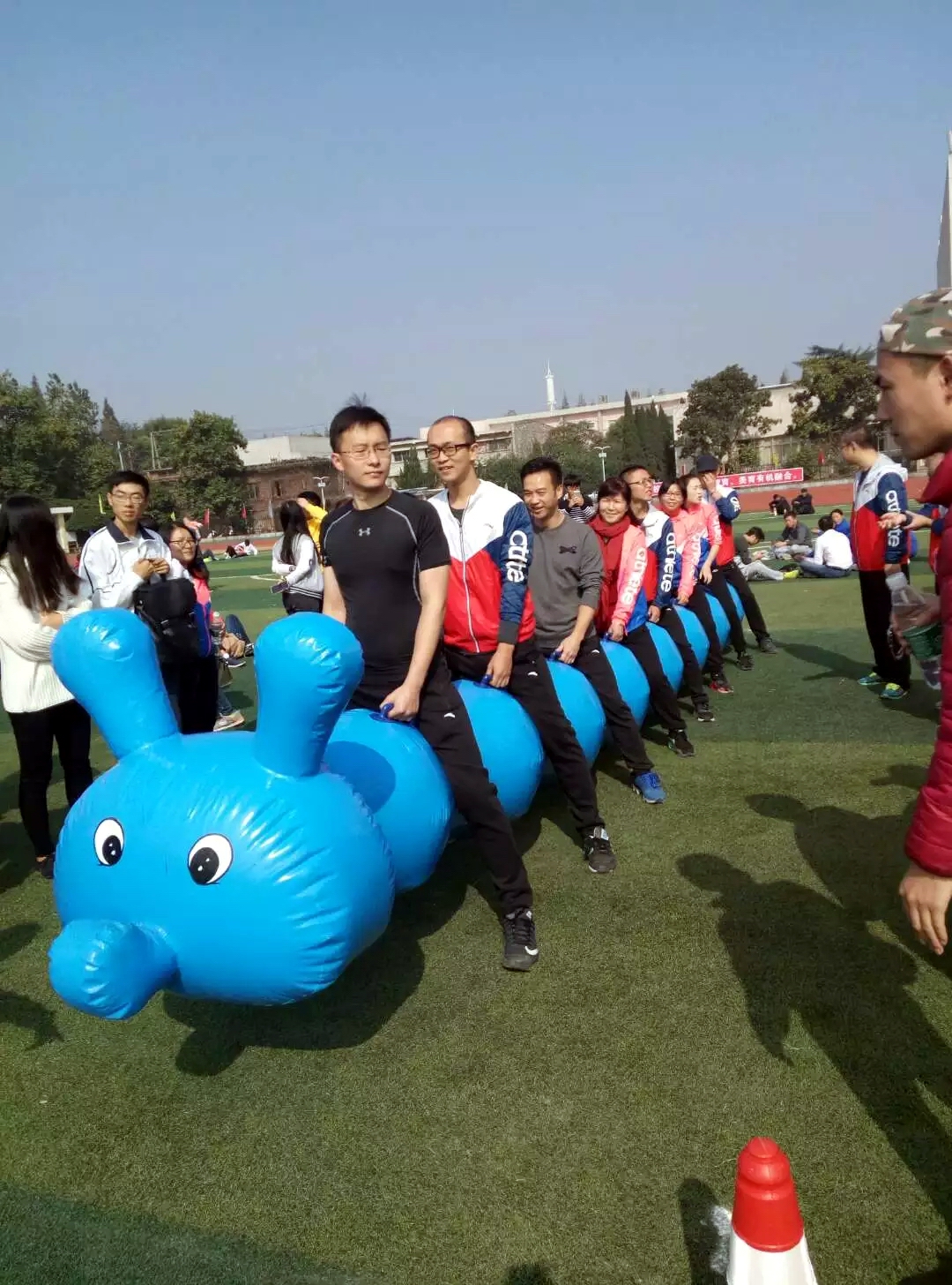 文学院教职工还参加了“毛毛虫”、拔河、迎面接力等7个集体竞赛项目。经过老师们的顽强拼搏,文学院取得了“毛毛虫”第4名、师生迎面接力第2名等好成绩。