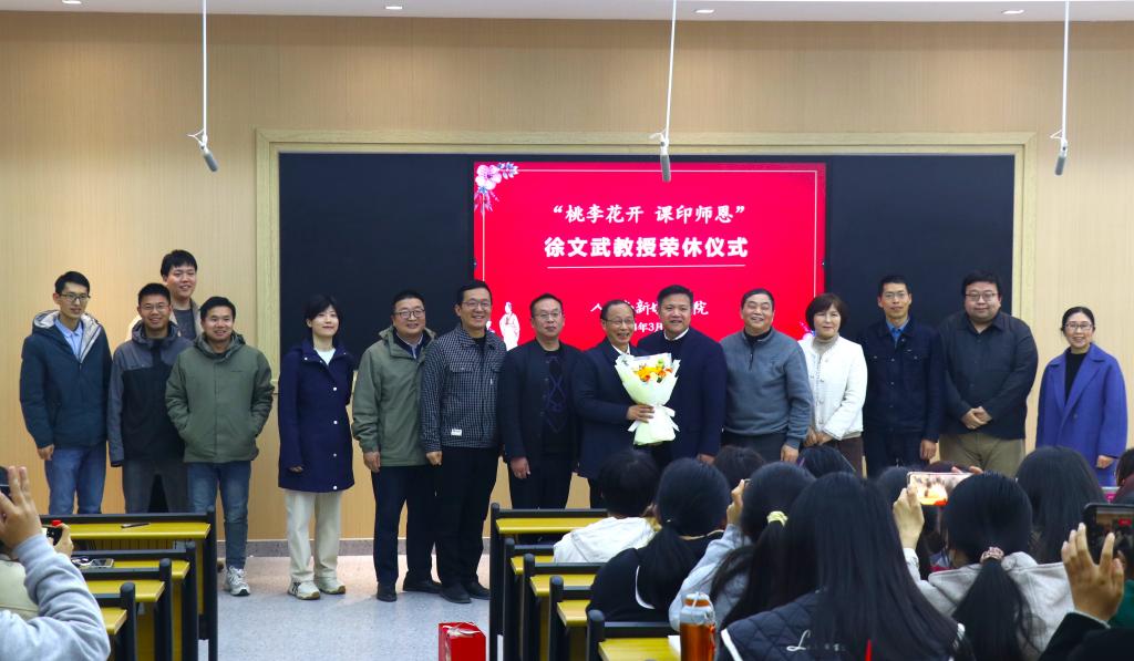 院长何世龙代表学院对徐文武教授多年的付出表示敬意和感谢,并希望他继续关心、关注和支持学校学院的发展。分党委书记李波代表学院为徐文武教授献花。