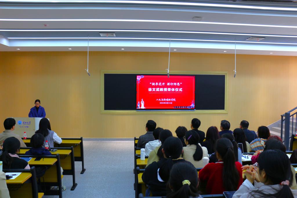 (通讯员 邝晴/文 孙晴 程欣睿/摄)岁月映初心,荣休敬韶华。3月14日下午,“桃李花开 课印师恩”徐文武教授荣休仪式在16教C109举行。yl6776永利集团领导、校友代表、历史系师生参加仪式。活动由分工会主席吴桂美主持。