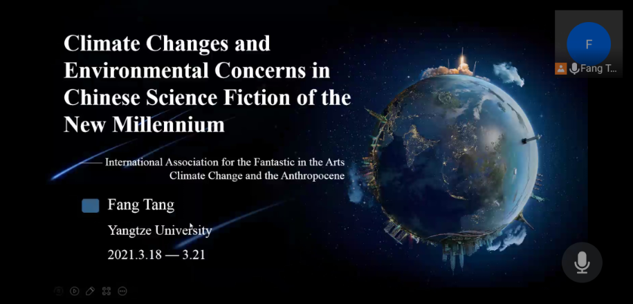 (通讯员 张稠茹)3月18至21日,国际艺术奇幻协会(International Association for the Fantastic in the Arts)在美国奥兰多举行了主题为“气候变化与人类世”(Climate Change and the Anthropocene)的线上学术研讨会,来自世界各地的专家学者们进行全球对话,共同探讨了气候变化和人类世代危机等问题。知名美国作家Jeff VanderMeer(曾获星云最佳长篇小说奖和雪莉·杰克逊奖,其小说Annihilation被改编为好莱坞同名电影《湮灭》)和来自俄勒冈大学的知名学者Stacy Alaimo教授作为特邀嘉宾出席了会议并做了主旨发言。我院教师汤芳受邀于线上参加了本次会议。
