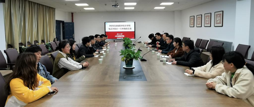 3月17日,信阳学院文学院院长毛正天、书记李赟等一行6人来我院访问交流。我院院长何世龙、书记杨克非等院领导与来访嘉宾进行了座谈。