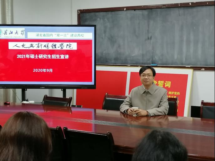 为了让更多考生了解我院研究生的教育特色和办学优势,同时激励更多兄弟院校的本科生报考我校研究生,9月23日上午,我院副院长余劲东一行三人赴湖北科技学院人文与传媒学院,深入开展研究生招生咨询活动,并向参与现场咨询活动的同学分发“yl6776永利集团2021年研究生招生简介”宣传折页近70份。