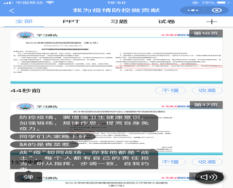 通过网络主题班会,同学们纷纷表示一定以“主人翁”的姿态积极主动应对疫情防控,准确、及时提供个人相关信息,不漏报、不瞒报,不提前返校,严格遵守当地党委和政府关于疫情防控的各项规定。疫情防控,人人有责。当前,疫情防控已进入最关键时期,我院将继续贯彻学校有关专项工作部署,以多种形式全面持续开展新型冠状病毒感染的肺炎疫情等传染病防控宣传教育,不忘初心,牢记使命,坚定信心,全力以赴,奋力确保文学院全体师生健康和生命安全,坚决打赢疫情防控阻击战。