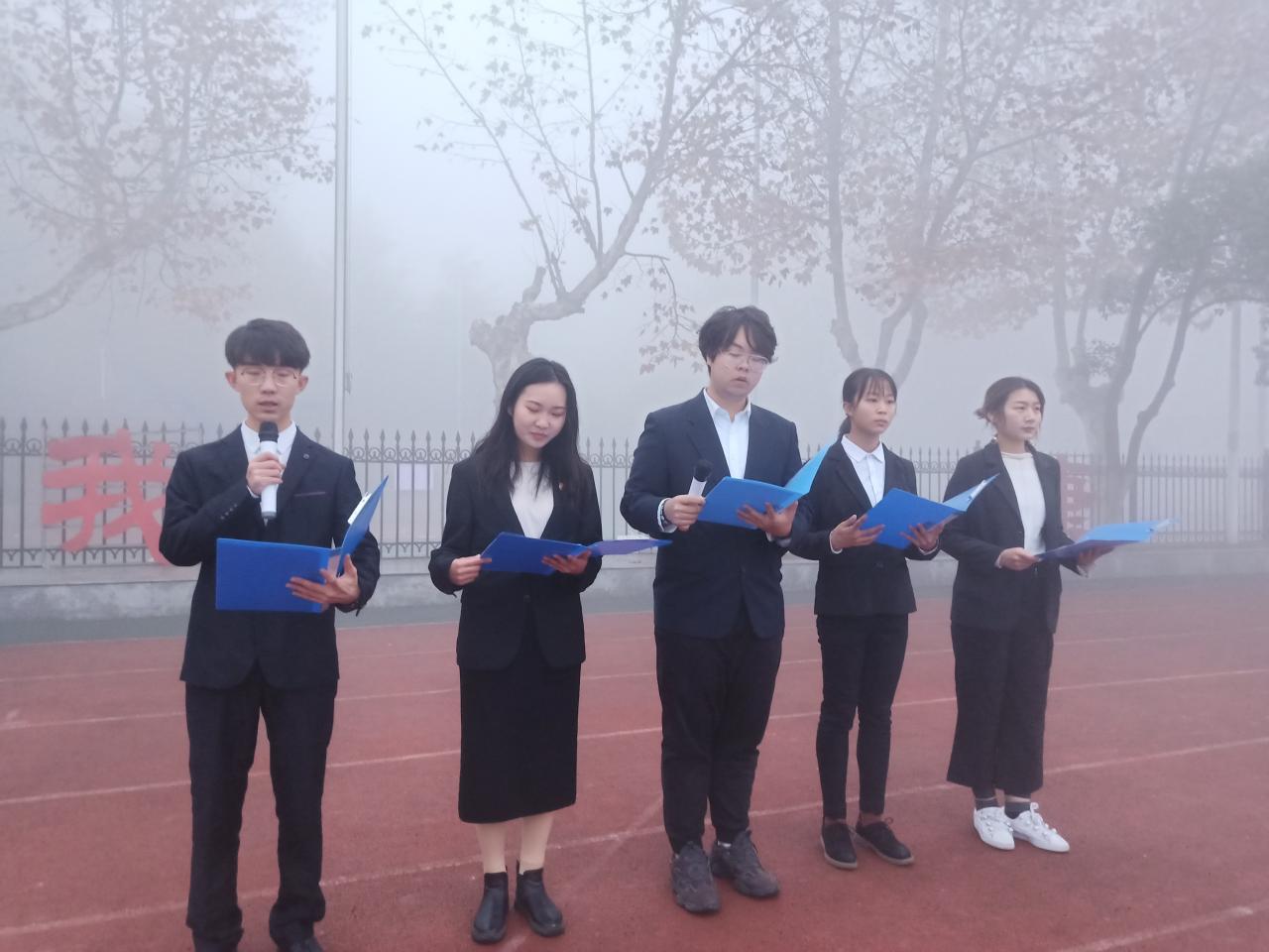 伴随着行进的号令,国旗护卫队的护旗手们迈着整齐的步伐,将国旗护送至升旗台。在庄严的国歌声中,五星红旗冉冉升起,全体师生庄严肃立,行注目礼,默默缅怀84年前在“一二·九”爱国运动中做出贡献和牺牲的先烈。