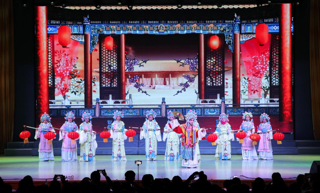 戏曲作为中华文明的璀璨瑰宝,在荆楚大地上绚烂夺目,一曲《挑担鼓围唱荆河》拉开了晚会的帷幕,老艺人们生动地为我们呈现了很久以前人们是如何观看荆河戏曲的场景,热闹非凡。马山民歌《火烧粑》尽展文化魅力,品味江汉平原浓郁的风土人情,了解那段独特的历史。《穆桂英招亲》中尽展巾帼英雄的柔情万丈。京剧《沙家浜》选段中,除了有吴松老师的倾情演唱外,还有中外学生的参与,为节目增添了新鲜力量。荆河戏《莲台收妃》唱腔婉转动人,令人心驰神往。汉滩小曲《唱荆州》以地方方言演唱,用四胡与丝弦乐器配合,将民间传说与历史传奇结合,主持人还邀请汉滩小曲传承人丁忠红老师进行了现场教学。接下来的京剧《大武生》表演者的动作让人看得眼花缭乱,高超的技艺足以感受到演员们台上一分钟台下十年功的努力。荆河戏新编《百花亭》由长大学子以全新的方式演绎——用中英双语为我们带来不一样的视觉感受。一个木鼓,两只鼓柄,虽无华丽的舞台,但那华美的唱词、平整的韵脚和瑰丽的故事,令人无限神往,老艺人们携手为我们带来《鼓盆歌串烧》。荆河戏《天官赐福》反映了人们对美好生活的期盼。最后一个节目留学生歌舞秀,为晚会画上了一个圆满的句号,留学生们活力四射的表演把晚会的气氛推向了高潮。一群群来自不同国家,肤色各异的外国青年,他们热爱中国传统文化,并用自己的方式表达着对中国优秀传统文化的喜爱之情,更传达了中外友好交流的美好愿景!