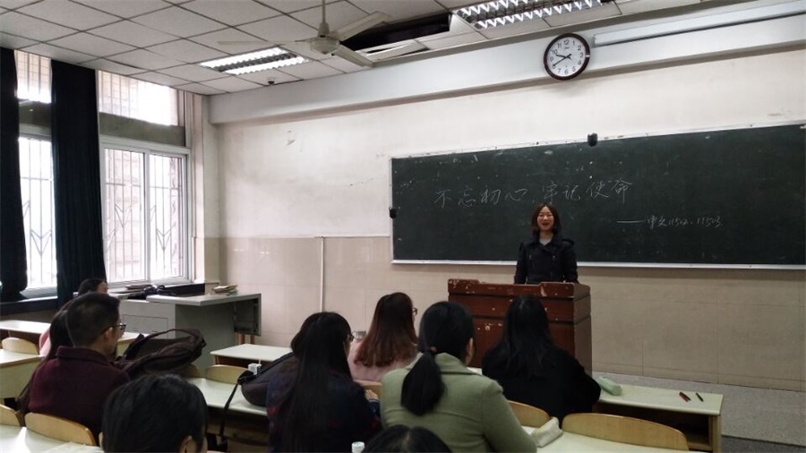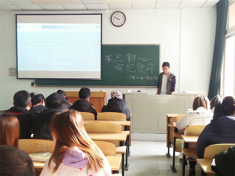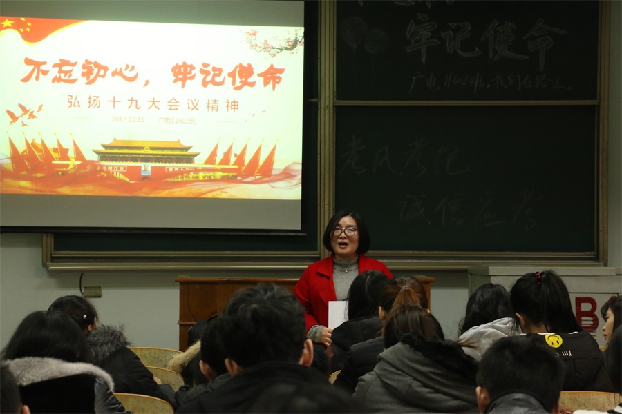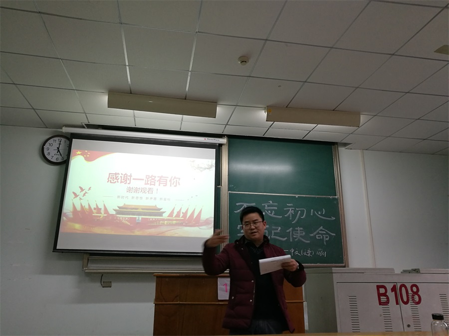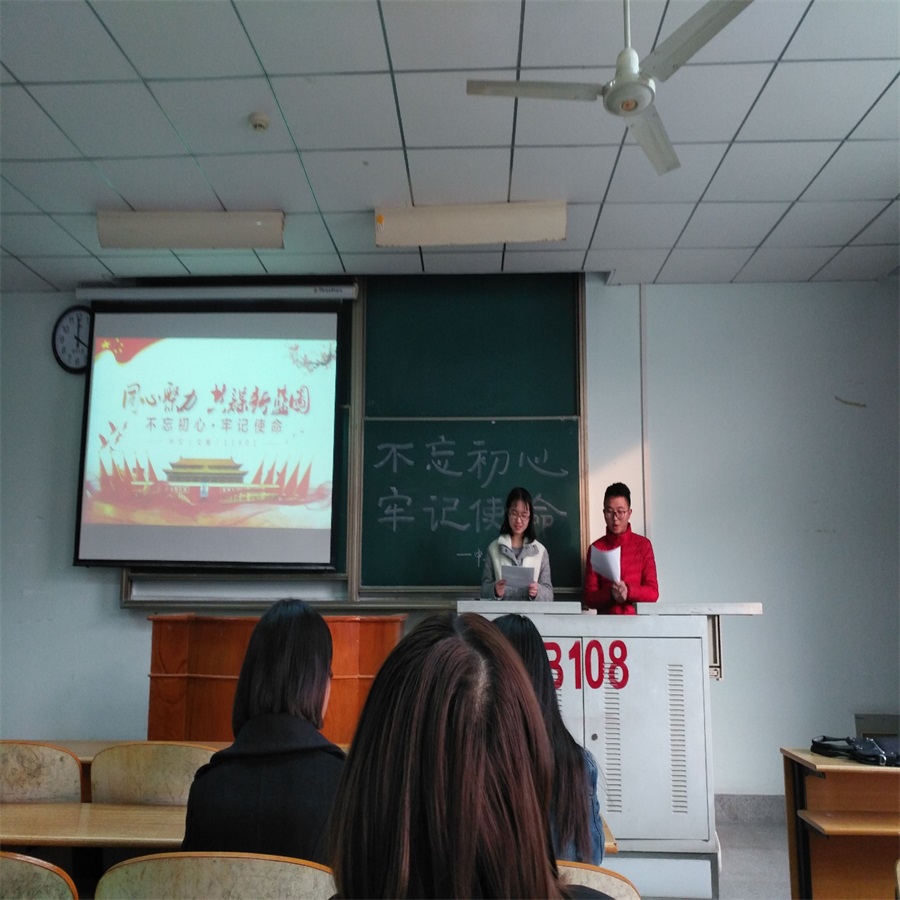 为深入学习贯彻党的十九大精神,学习领悟习近平新时代中国特色社会主义思想,引导广大团员青年坚定不移、不忘初心跟党走,11月27日至12月18 日,文学院团委组织各年级团支部集中开展了 “不忘初心,牢记使命”主题团日活动。各团支部结合实际情况,以理论学习、交流分享、诗歌朗诵、重温入团誓词等方式学习党的十九大精神,学习习近平新时代中国特色社会主义思想。学院2个学生党支部、43个团支部,共计1400余名同学参加了此次活动。院团委负责人陈娟、各班主任老师分别深入各个团支部,与同学们面对面互动交流。