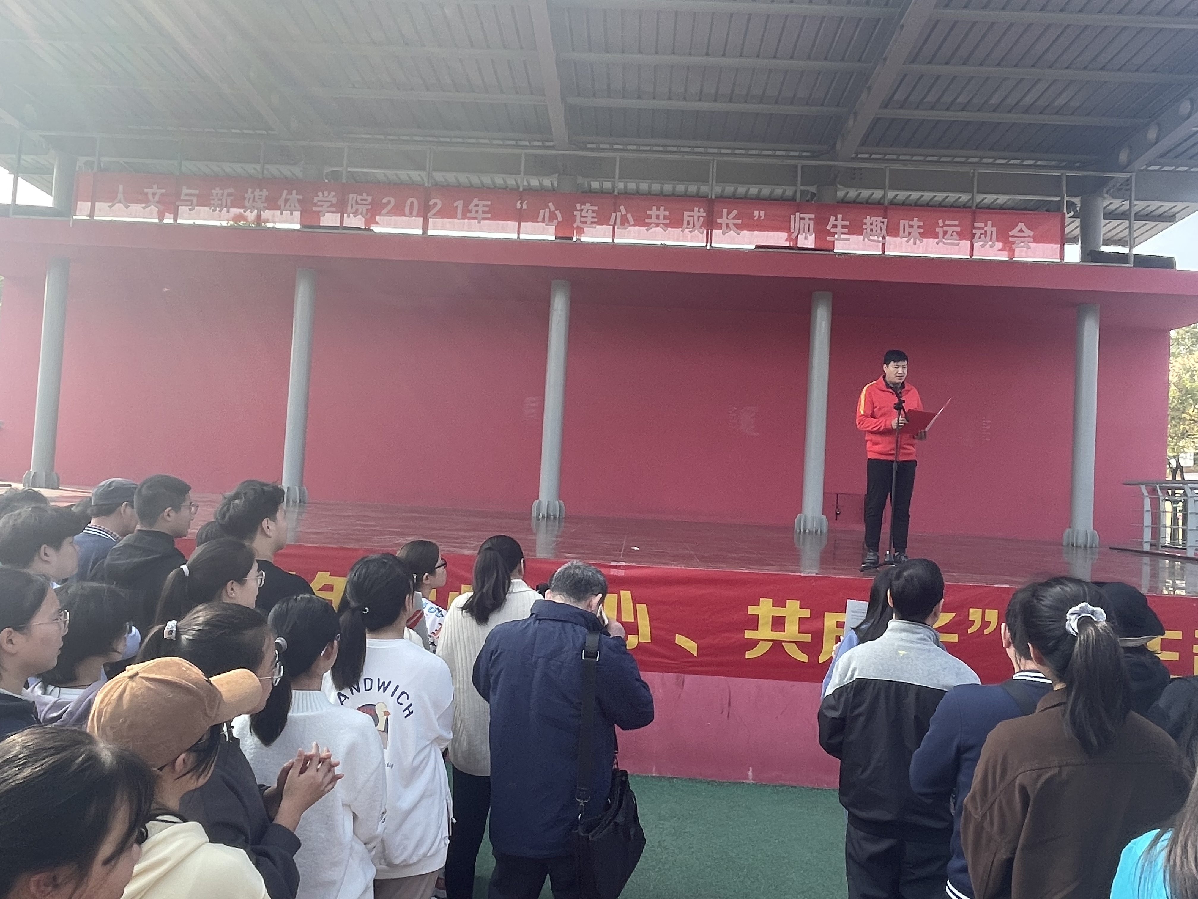 学院党委副书记胡世先在致辞中指出,“教育应该充满爱,有爱的教育才有温度,才有吸引力和感染力。今天是我们学院大家庭的内部聚会,让我们打开心结,敞开怀抱,用青春的激情参与到活动中去!”。随后,学院党委书记杨克非宣布运动会开幕。