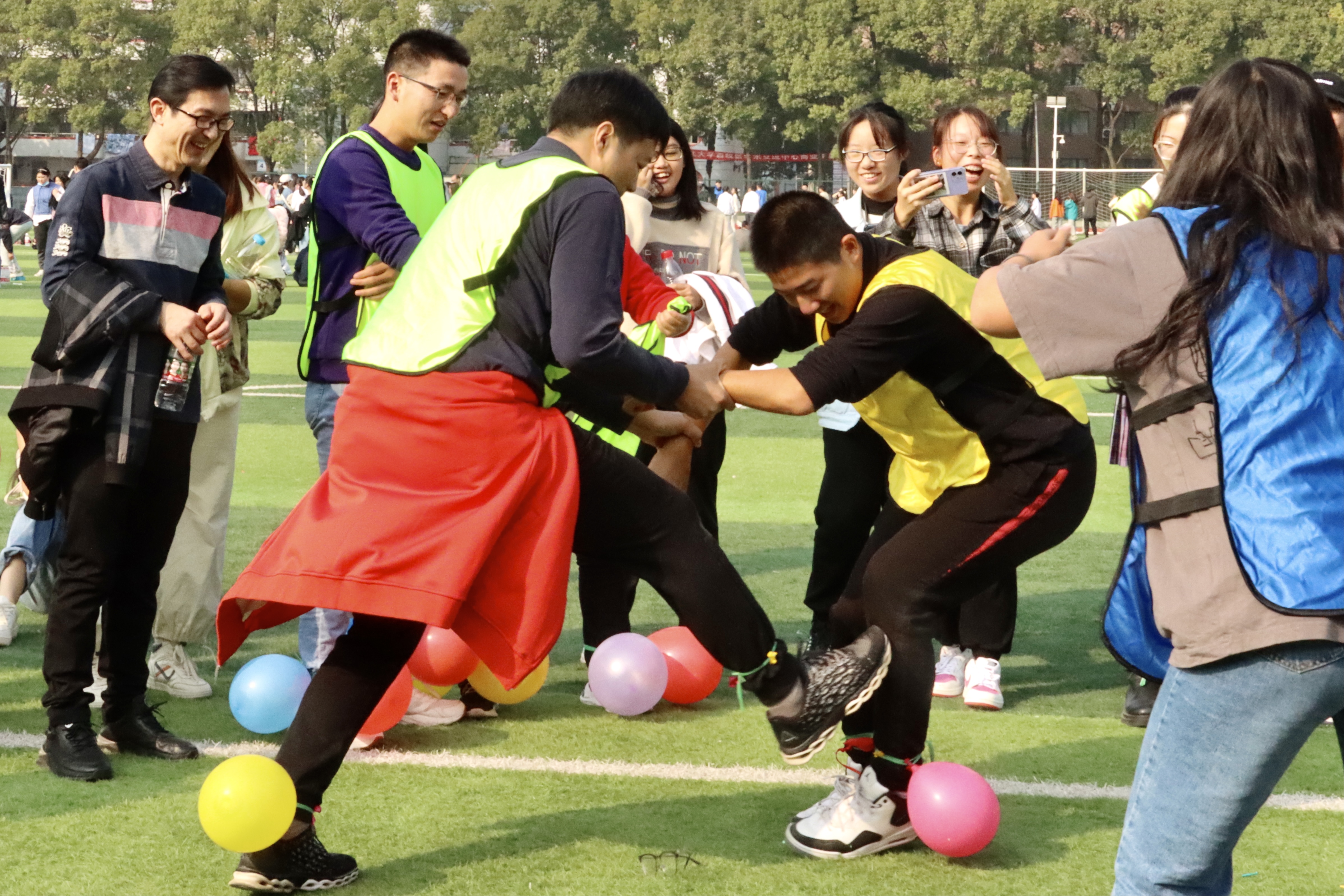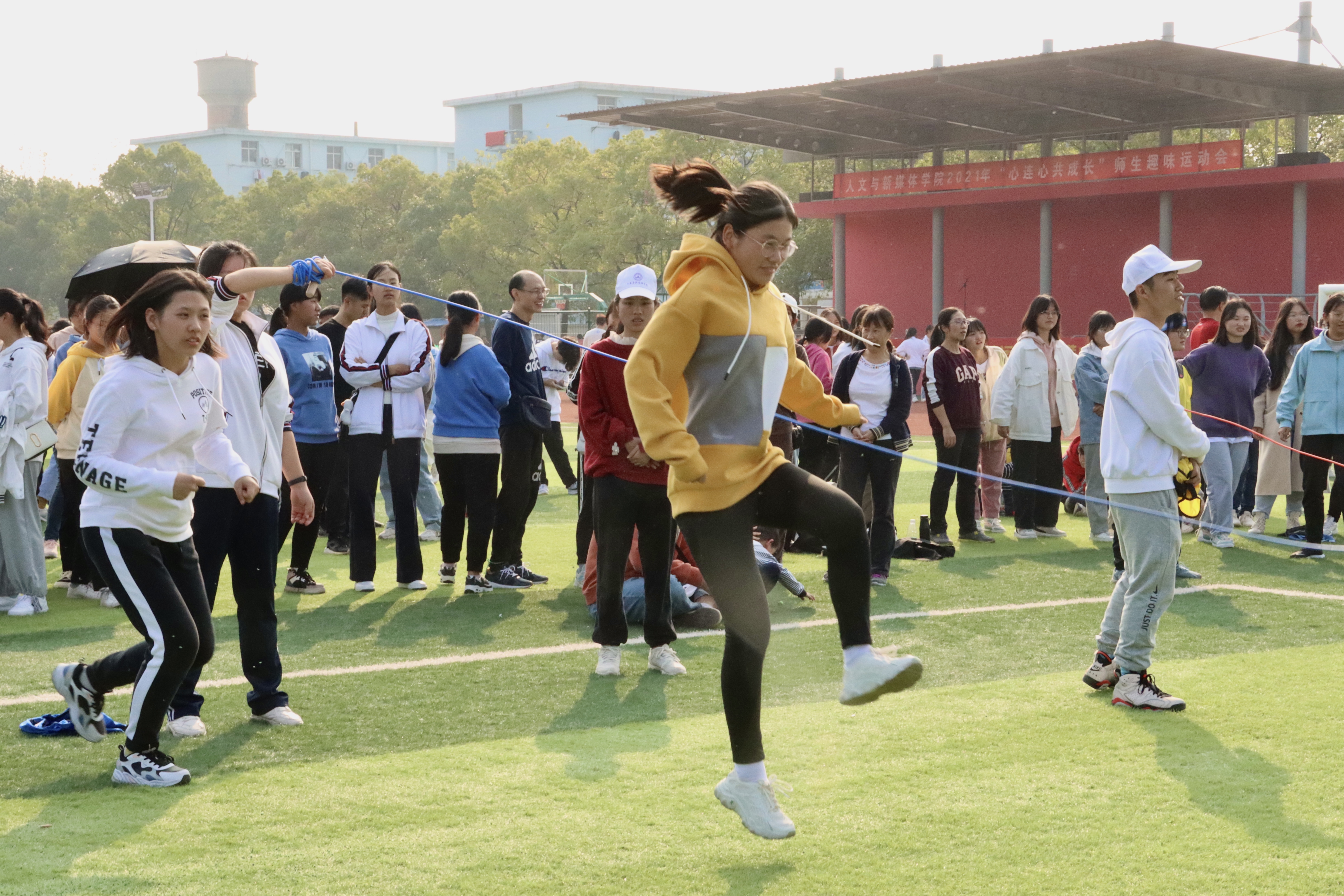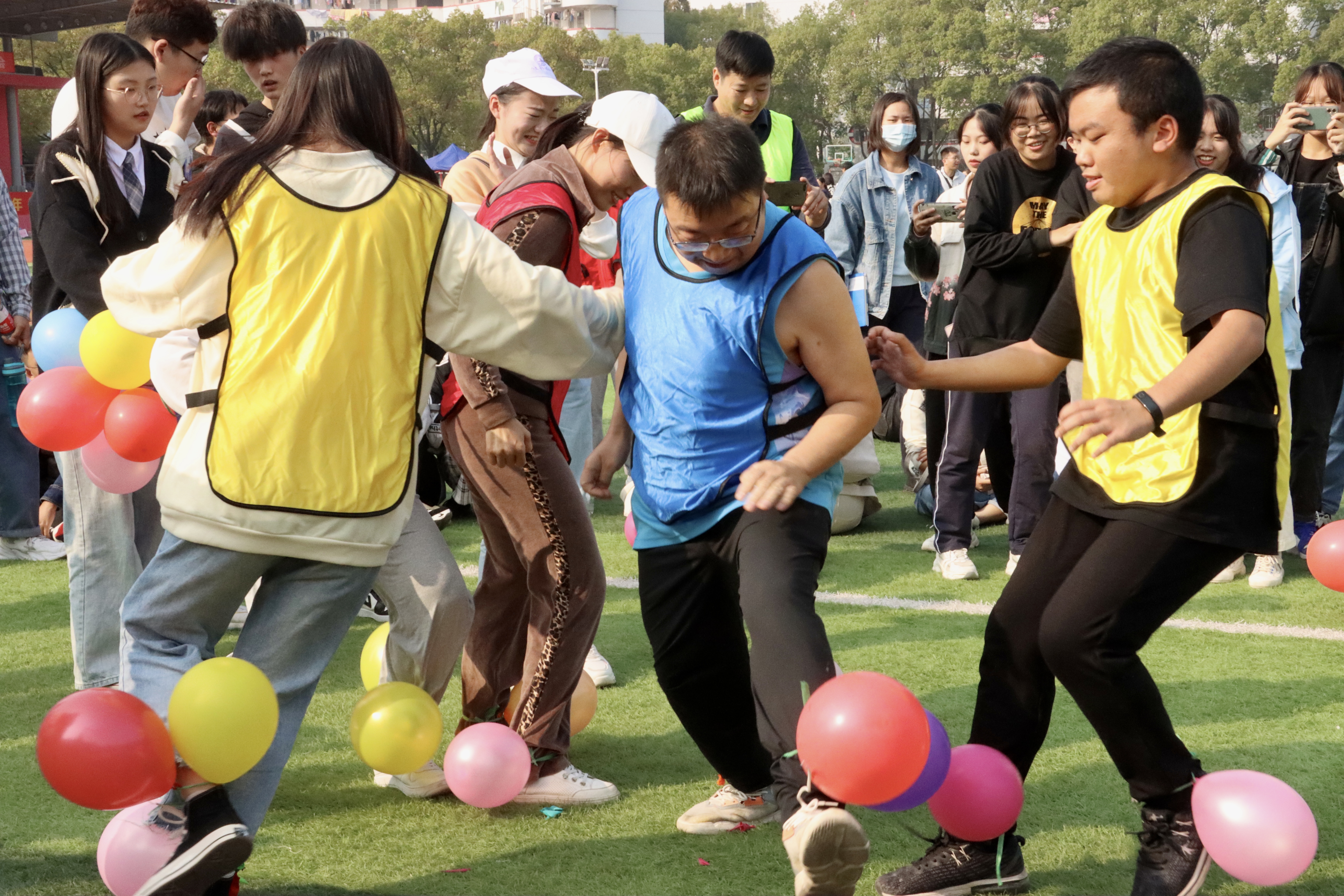 此次运动会共设置“扔沙包”“踩气球”“摸石头过河”“跳长绳”“拔河”“接力跑”等六个项目。师生们默契配合,相互鼓励,共同完成各个项目的比赛。活动从下午2点持续到6点,现场气氛热烈。