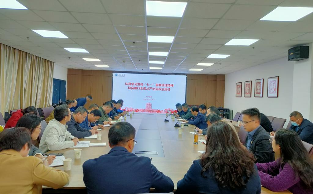 结合纪检监察工作,刘靖君指出,习近平总书记在“七一”重要讲话中关于全面从严治党、推进党风廉政建设和反腐败斗争的重要论述,为做好新时代高校纪检监察工作提供了遵循、指明了方向。全校纪检监察系统要深入学习贯彻落实总书记的重要讲话精神,要坚持学原文、悟原理,在学中干、在干中学,从中汲取智慧和力量,有效发挥监督保障执行、促进完善发展作用,为学校高质量发展提供坚强纪律保障。