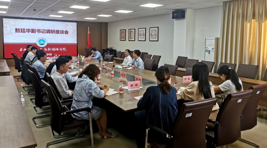 5月4日下午,校党委副书记敖廷华、人事处处长蒋四华、人事处博管科科长何可可一行来我院调研,学院领导班子成员、各系主任、科室负责人参加调研座谈会。座谈会由学院党委书记杨克非主持。
