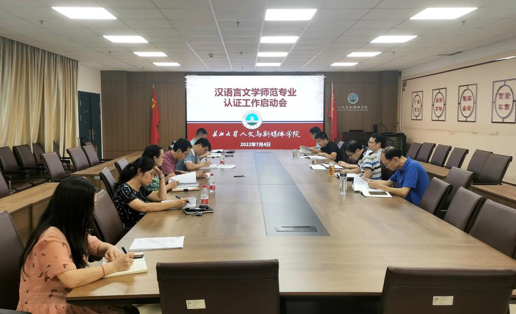 为贯彻落实党的十九大精神,按照教育部关于《普通高等学校师范类专业认证实施办法(暂行)》(教师〔2017〕13号)的通知,结合湖北省的相关文件精神,我院汉语言文学专业准备申请接受师范类专业第二级认证,于2022年7月4日下午在文科楼705会议室召开了汉语言文学师范专业认证工作启动会,学院全体领导和部分汉语言文学专业教师参会,会议由副院长杨家海主持。