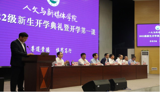 院长何世龙代表学院对2022级新生表示热烈欢迎。他希望同学们迅速调整心态,尽快适应大学生活;在学好专业知识的同时,学会做人,培养健全的人格和优秀的人品。何院长勉励同学们,平凡并不可耻,平凡也可以伟大。不要对自己有不切实际的过高的期待,要踏踏实实地努力把自己能够控制的、力能所及的每一件事情做好,做一个内心健康、踏实、富足的人。