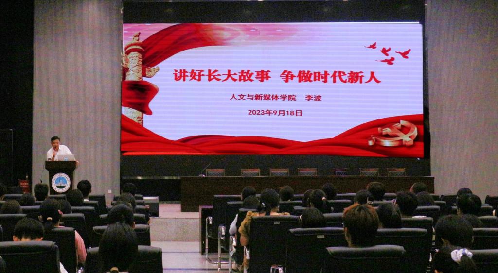 开学典礼结束后,学院党委书记李波以“讲好长大故事,争做时代新人”为题,为390名新生讲授开学第一课。李波从“百年党史中的长大故事、怎样讲好长大故事、如何书写自己的长大故事”三个方面,勉励同学们从长大发展历程中汲取奋进力量,争做时代新人。他希望同学们做有志青年,做有为青年,做有识青年,在青春赛道上跑出最好成绩,在长大的岁月里遇见最好的自己!