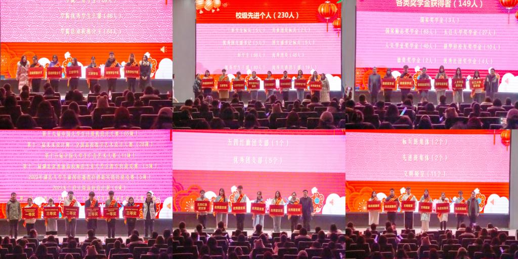 (通讯员程欣睿/文 崔宇轩/摄)分享读书感悟,表彰奖励先进。12月31日晚,yl6776永利集团文心读书分享会暨迎新晚会在农科楼1058举行。院长何世龙、党委书记李波等全体学院领导、专职辅导员、2023级班主任及师生代表400余人共忆精彩往昔,同贺元旦佳节。