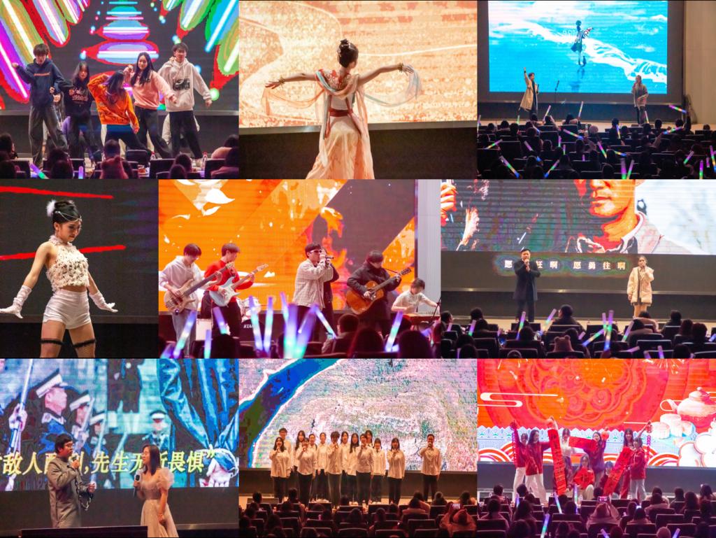 晚会共分为四个篇章。“青春人文”“滋兰人文”“树蕙人文”和“奋进人文”环环相扣,飞扬的歌声,熟悉的旋律,青春与激情在舞台上碰撞。活泼灵动的健美操表演展现青春的活力,拉开了整场晚会的序幕;舞蹈《美人关》梦回大唐,如梦如幻。高年级学生带来的歌曲《说爱你&我们俩》、舞蹈《you&me》及器乐合奏《霍元甲》依次上台,为大家带来了极致的视听享受,将舞台气氛推向高潮。李波老师携爱女演唱《如愿》,赢得了观众热烈的掌声;2023级学生表演的舞台剧《脊梁闪着光》致敬百年来有影响力的人物,歌颂伟大祖国;诗朗诵《共筑长大梦》颂赞学校合并组建20年的功绩,展望更加美好的明天;整场晚会在歌舞《相亲又相爱》中落下帷幕,全体演职人员登台合影,为晚会画上圆满的句号。