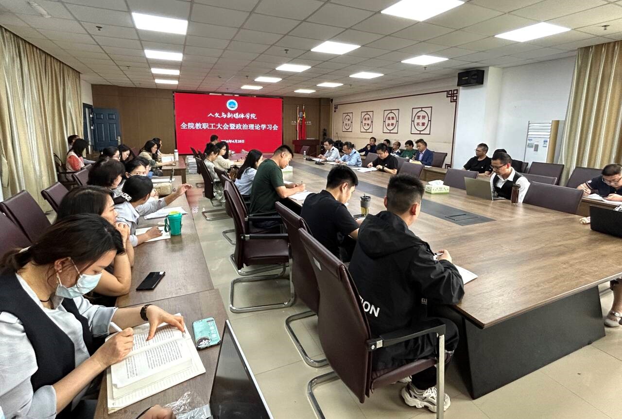 (通讯员 田华蓉)4月25日下午,学院在文科楼705会议室召开教职工大会,部署近期本科教育教学审核评估工作,并开展政治理论学习。受党委书记李波委托,会议由党委副书记竺正海主持。