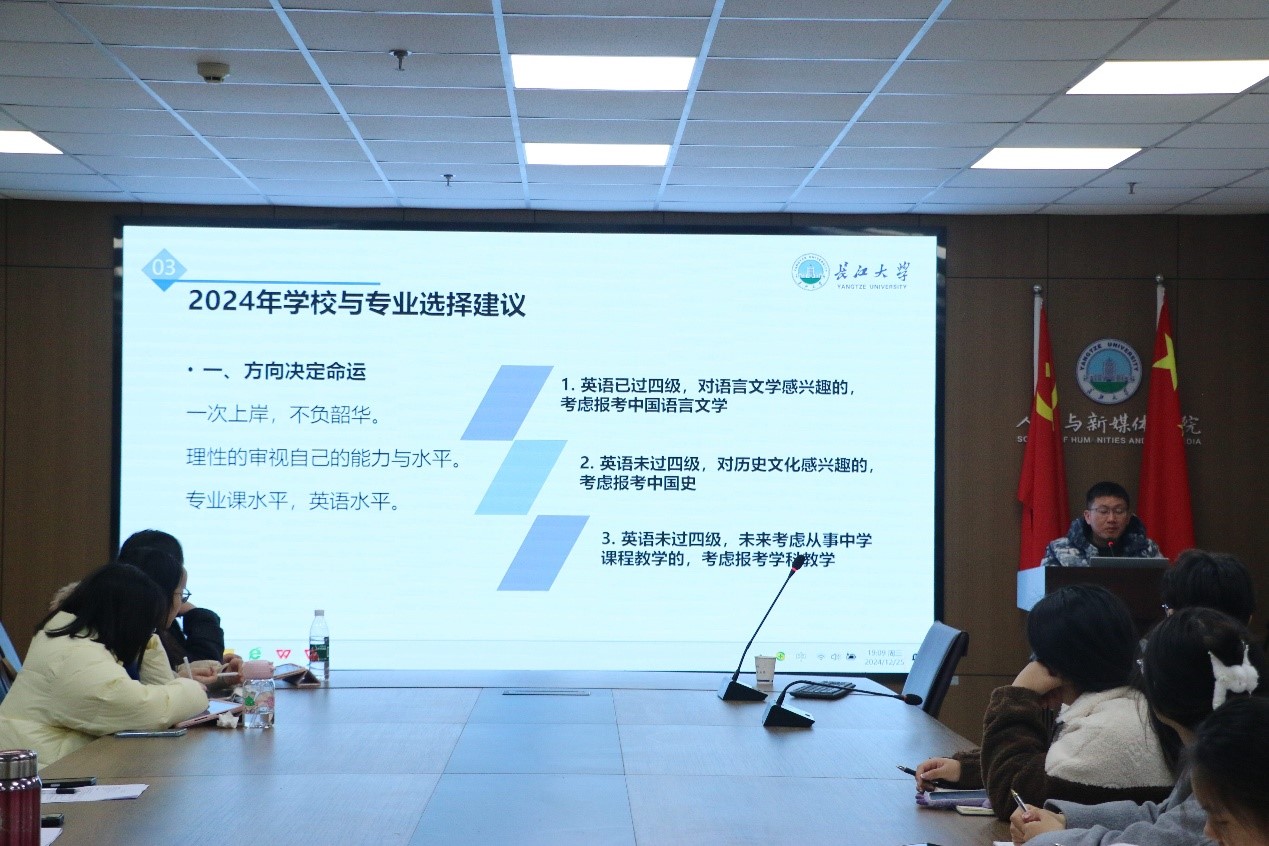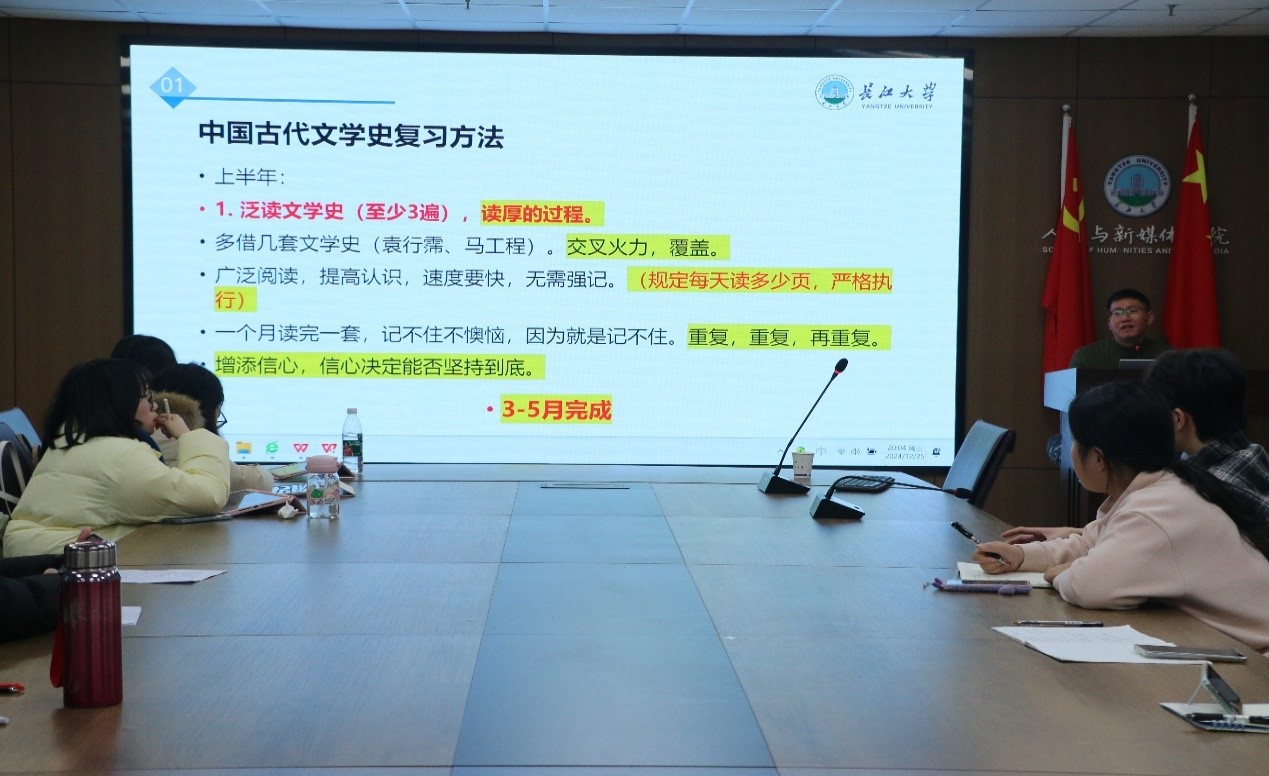 (通讯员 冷昭雨/摄 张钰洁/文)为帮助学生明确考研方向,增强学生考研信心,解答学生考研疑问,助力考研学子成功上岸。学院于12月25日在文科楼705会议室举办了2026届中文考研专项辅导讲座,本次主讲人为我院副院长李征宇老师。