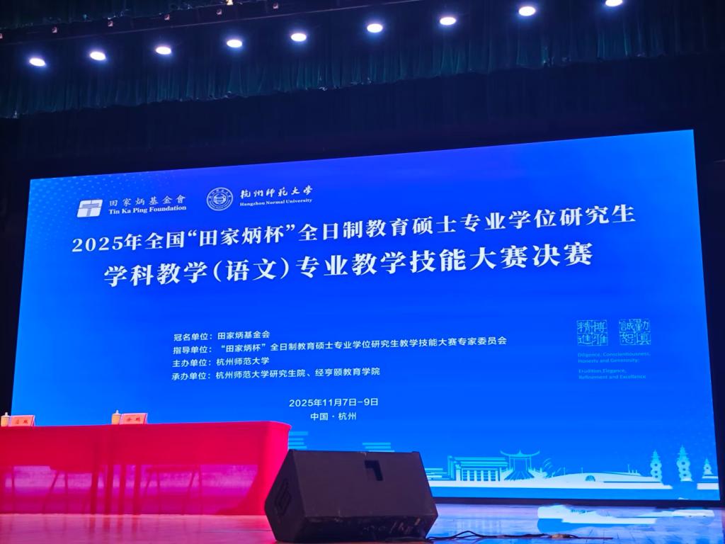 11月9日,2025年全国“田家炳杯”全日制教育硕士专业学位研究生教学技能大赛圆满落幕。我院学生郝启昕在章芳老师与吴桂美老师的悉心带领下,凭借扎实的专业功底、创新的教学设计与出色的现场表现,从全国众多选手中脱颖而出,为学校赢得了荣誉。