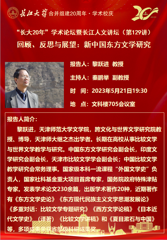 “长大20年”学术论坛暨长江人文讲坛(第129讲)
