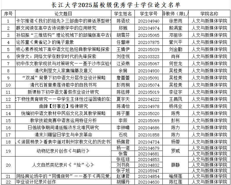 根据《6776永利集团毕业论文(设计)工作管理办法(修订)》(长大校发〔2023〕114号文件)及《关于组织评选2025届校级优秀学士学位论文的通知》,学院组织了2025届校级优秀学士学位论文评审工作。经学院学位评定分委员会集体研究决定,拟推荐陈语欣、郑娥、胡雪芬等25位同学的学位论文为校级优秀学士学位论文。